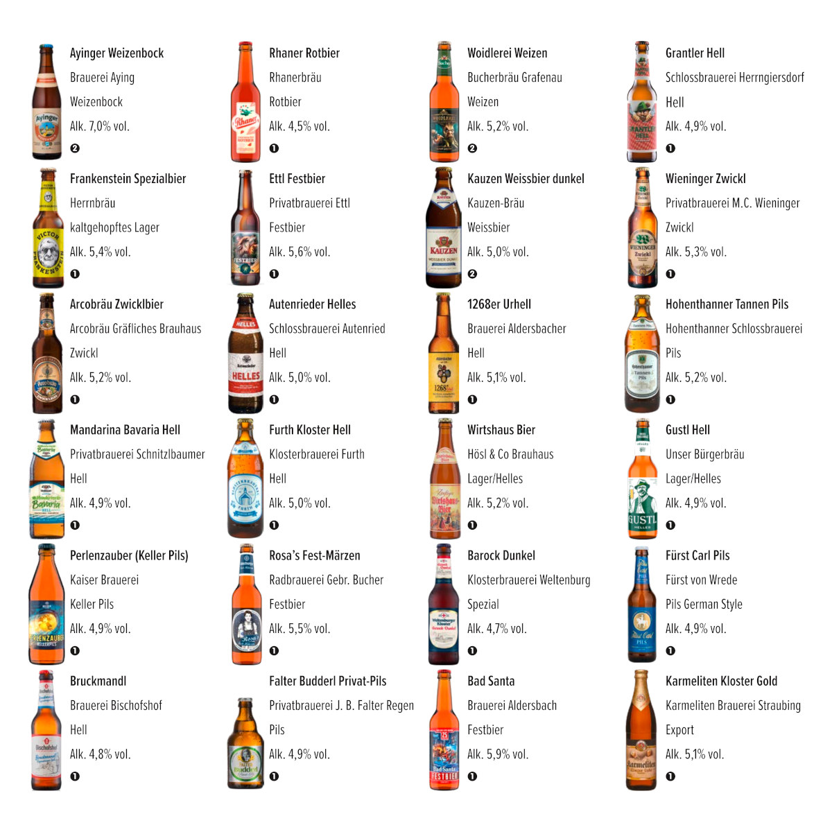 24 oryginalne piwa rzemieślnicze 0,33 l (różne style i browary z Bawarii),